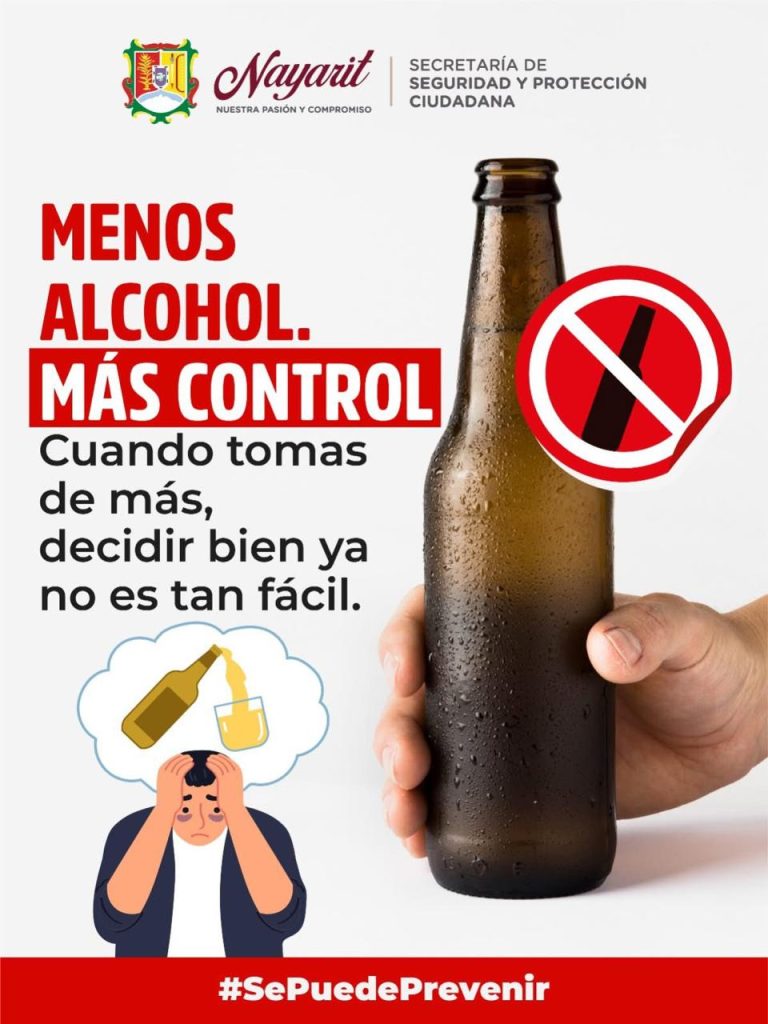 Recomendación de la Autoridad para evitar incidentes o accidentes en menor y mayor escala, pues con la sustancia en la sangre se CREE que eres más sociable, empatico y todo se siente y se ve diferente ESTO es común en mujeres y hombres que consumen Alcohol en bebidas de diversas variedades, la inhibición pasa a ser un RIESGO para todos desde el que lo bebe hasta el que vive o conduce a los lados, en la calle o en su casa hasta en lugares propios o inapropiados PERO la meta es mejor NO consumir en cantidades ni poco ni mucho, una no es ninguna y dos son más que UNA y así se va hasta perder el sentido, e ocasiones lesiones y hasta la VIDA, hagamos caso a quien lo recomienda por nuestro bien y el de los demás que arrastramos hasta nuestros seres queridos…