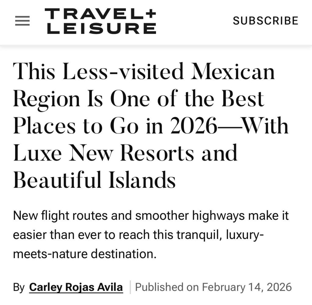 El gobernador del estado, Miguel Ángel Navarro Quintero, agradeció a la revista internacional Travel + Leisure por reconocer a la Riviera Nayarit como uno de los mejores destinos para visitar en 2026.