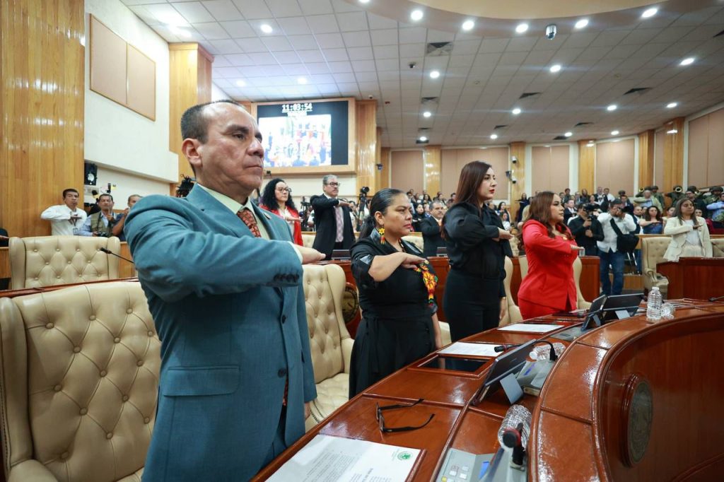 Al hacer uso de la tribuna, el presidente del Congreso local, diputado Salvador Castañeda Rangel, afirmó “hoy renovamos nuestro compromiso con la legalidad, con la justicia social y con la dignidad de cada persona, sabemos que tenemos la confianza del pueblo y no les vamos a fallar, trabajaremos de manera ardua para posicionar a la identidad en el lugar que le corresponde como símbolo de desarrollo y grandeza”.