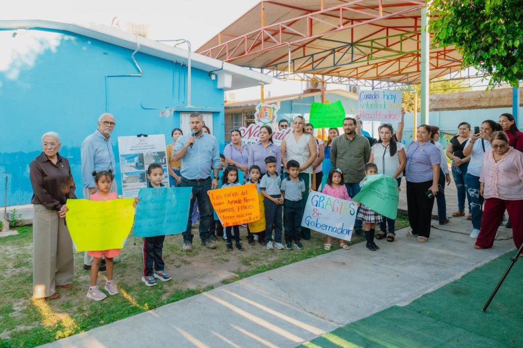Asimismo, señaló que, a solicitud de su esposa, la doctora Beatriz Estrada Martínez, asumió el compromiso de rehabilitar la barda perimetral, instalar juegos infantiles inclusivos, realizar poda preventiva y apoyar con pintura para que madres y padres de familia participen en el mejoramiento del plantel.