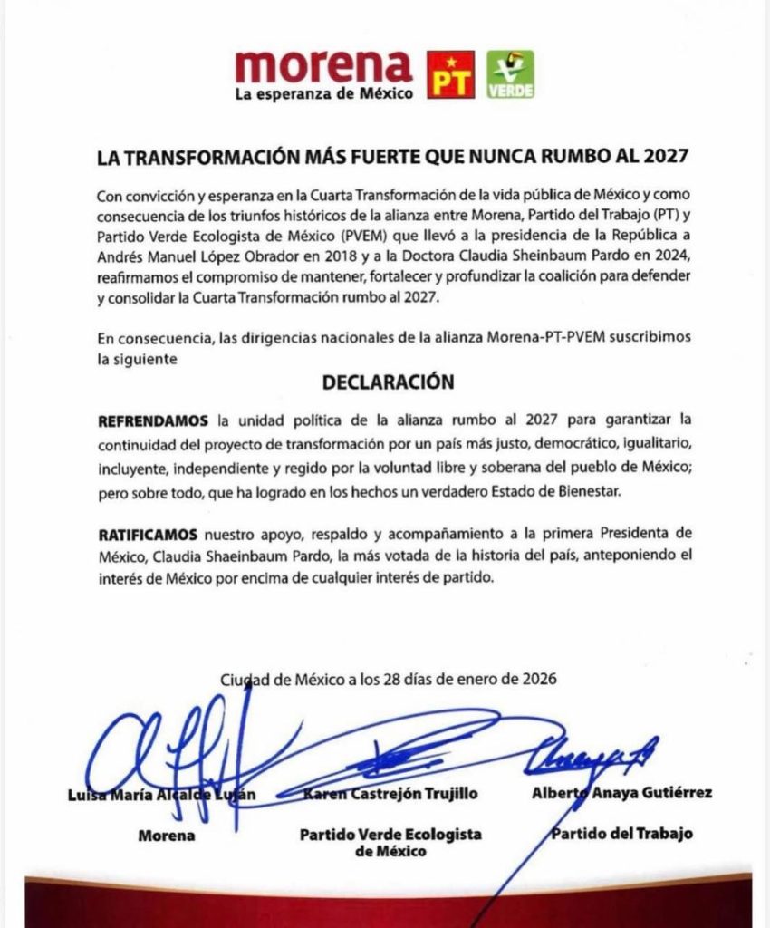 Y las firmas de los Dirigentes Nacionales del Partido del Trabajo, Movimiento de Regeneración Nacional y por supuesto el Verde Ecologista de México, llevando a la cabeza a la Senadora JASMIN BUGARIN, como mujer a la cabeza en la búsqueda de esta posición que buscan el cargo máximo en Nayarit y que hoy por hoy parece llevarles la delantera a todas…