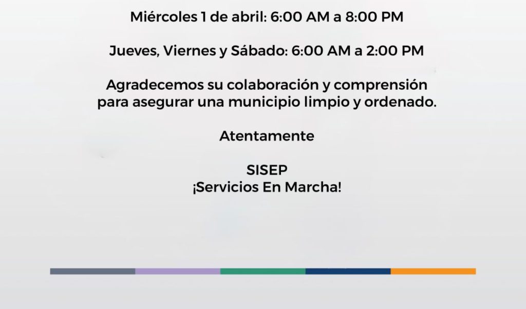 Con motivo de los días santos, el Sistema Integral de Servicios Públicos (SISEP) anunció que la recolección de basura continuará brindándose en el municipio, con horarios especiales.